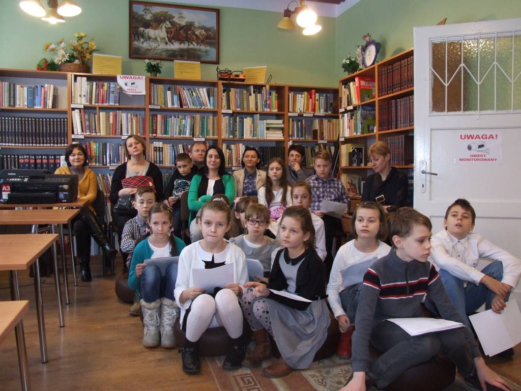 Konkurs ,,Mistrz pięknego czytania’’ po raz pierwszy odbył się w Bibliotece Publicznej im. Medarda Downarowicza w Łochowie dnia 8 stycznia 2015 roku. W kameralnym gronie, wśród półek z książkami stworzony został niepowtarzalny, przyjazny klimat dla młodych artystów, którzy mogli swobodnie i w skupieniu interpretować przygotowany wiersz i prozę. Każdy z nich miał tylko niecałe 5 minut, aby pokazać się z jak najlepszej strony. Każdy z nich uzyskiwał dwie oddzielne oceny punktacji – jedną z wiersza, drugą z czytanego fragmentu ulubionej książki. Ponad to, nasi młodzi artyści byli podzieleni na dwie kategorie wiekowe – klasy I – III oraz klasy IV – VI, wybór laureatów był więc dość trudny. Tylko w jednym momencie zdecydowanie i jednogłośnie komisja konkursowa wybrała Marię Ziółkowską, która stanowczo wyróżniała się wręcz kunsztem teatralnym – niemalże zagrała te role, które recytowała i czytała - pierwsze miejsce wśród najmłodszych uczestników, drugie miejsce uzyskała Oliwia Gabińska a za nią, na trzecim miejscu Aleksandra Gliwicka. Z pośród klas IV-VI pierwsze miejsce uzyskała Weronika Molska, zaraz za nią Kuba Pasek-Grędziak, a na trzecim miejscu Eryk Wojtasiewicz. Wszyscy uczestnicy otrzymali dyplomy za udział w konkursie oraz słodki poczęstunek. Ponad to laureaci otrzymali książki, maskotki, gry planszowe i foldery turystyczne o naszej okolicy. Gratulujemy zwycięzcom i uczestnikom konkursu za odwagę i chęć uczestniczenia w rywalizacji!