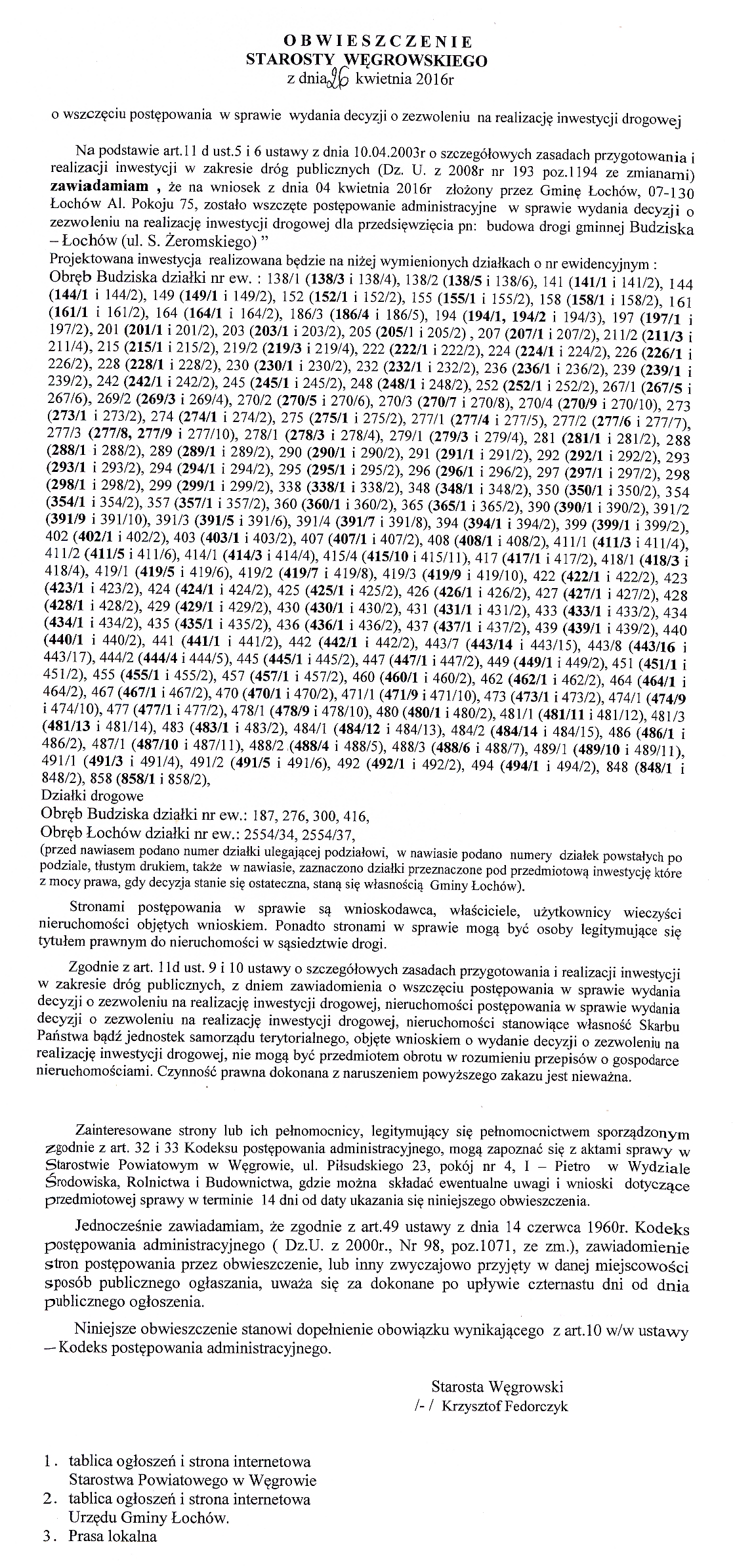 Obwieszczenie Starosty Węgrowskiego z 26.04.2016