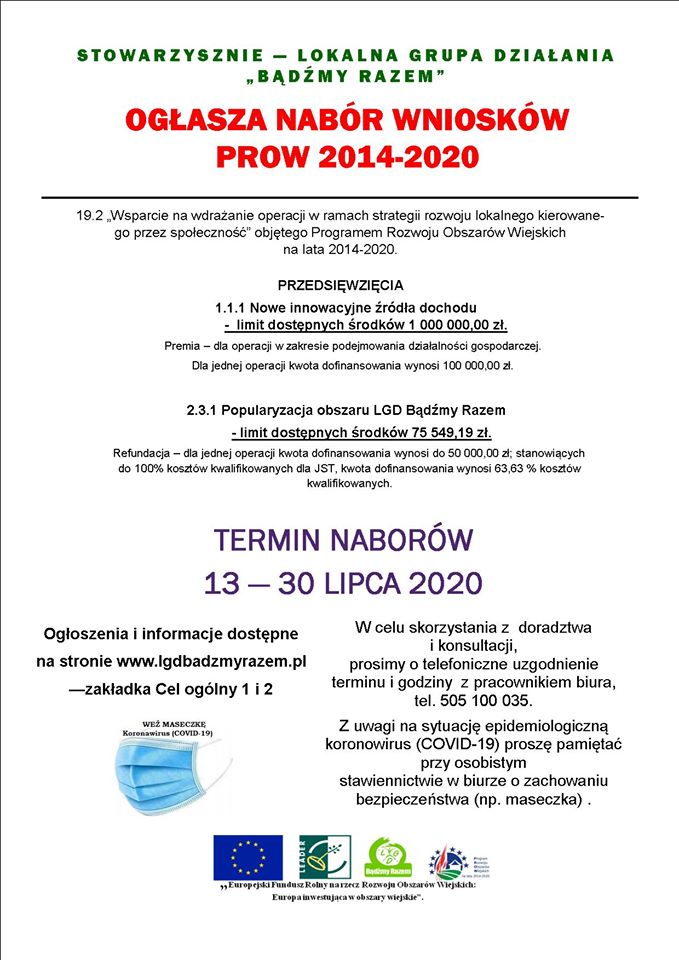 OGŁOSZENIE O NABORZE WNIOSKÓW – Ogłoszenie nr 6/2020 (premia)