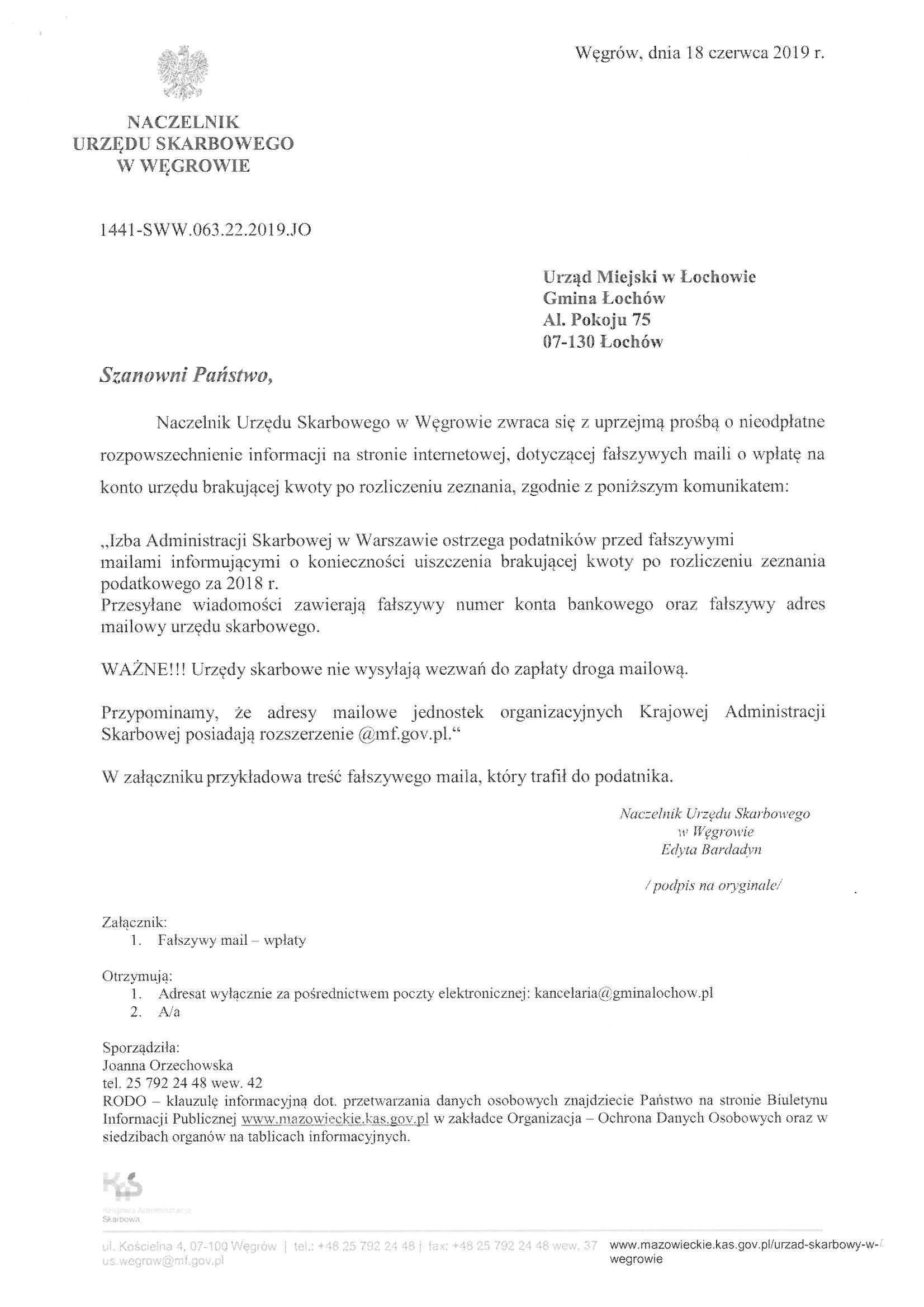 Informacja Naczelnika Urzędu Skarbowego w Węgrowie